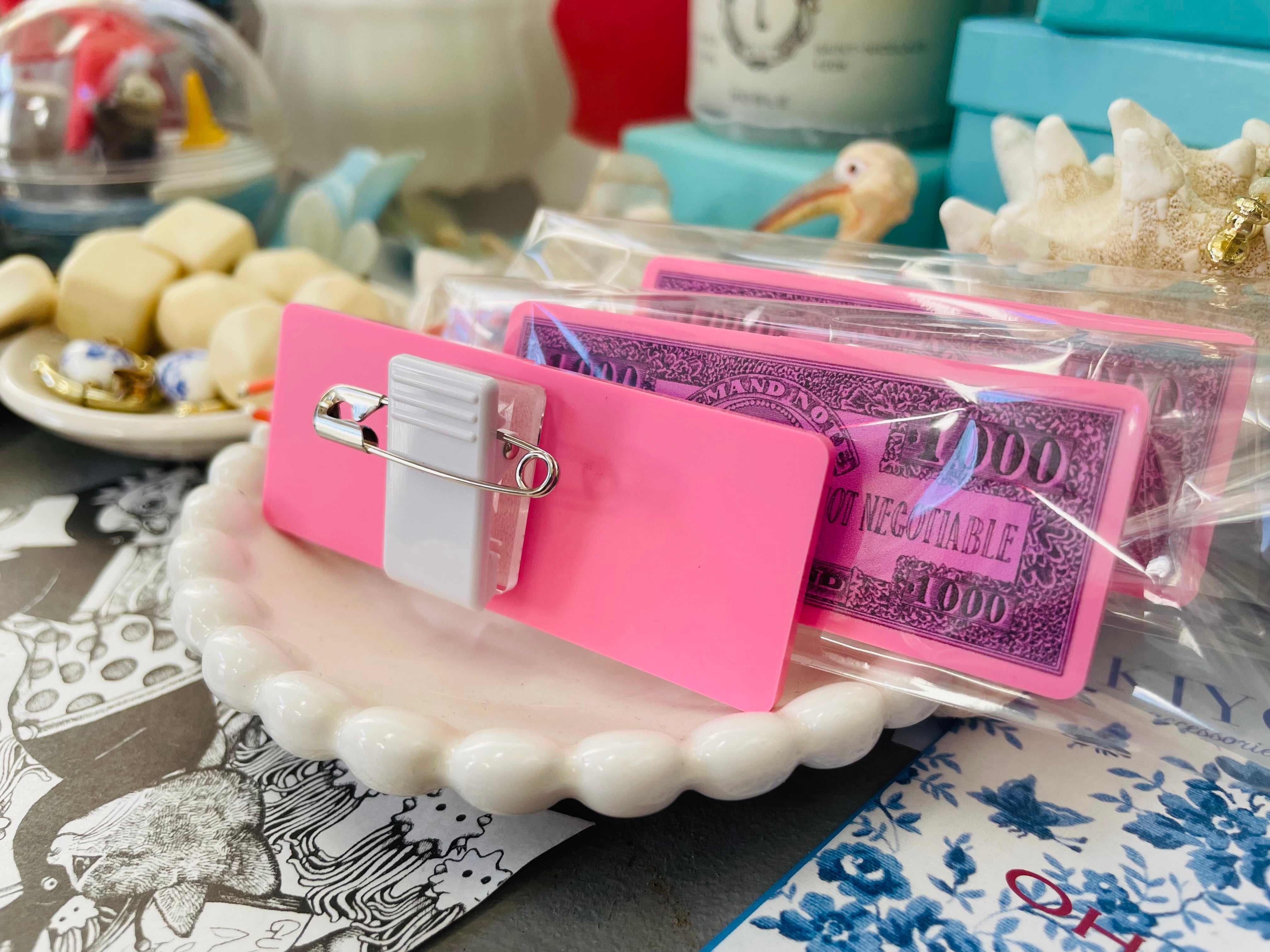 裏はクリップと安全ピンが着いており